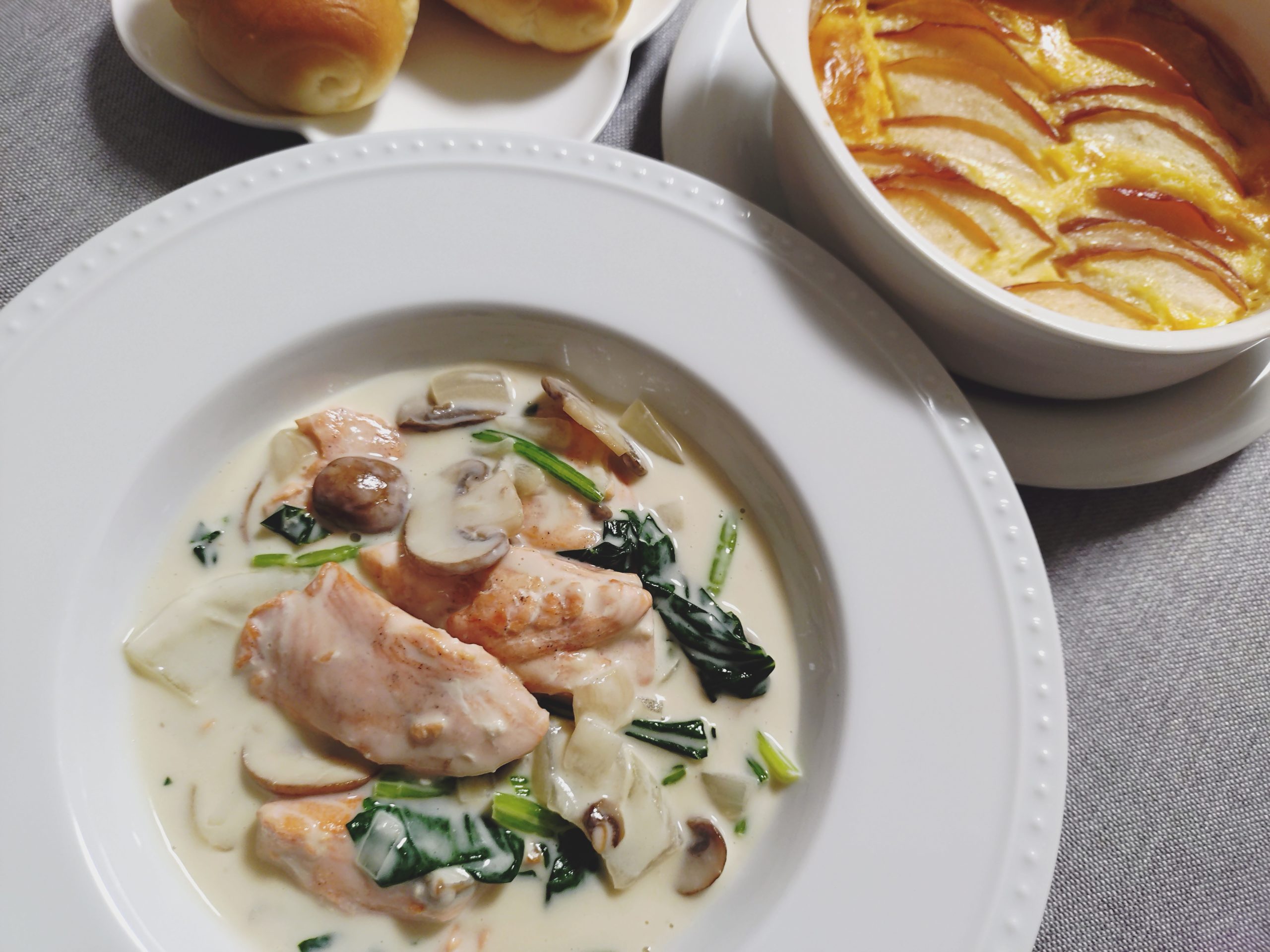 【Lesson35秋鮭のブランケットとりんごのクラフティ】