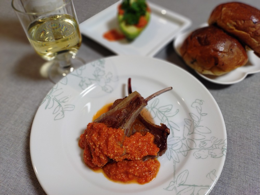【Lesson38ラムチョップステーキ&アボカドサラダロメスコソースがけ】