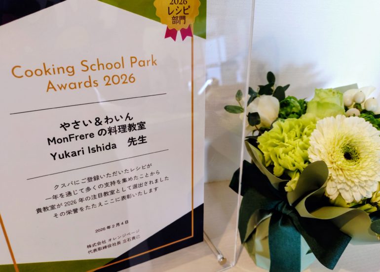 この度、全国料理教室検索サイト大手「クスパ」よりクスパアワード2026 レシピ部門受賞いただきました。ここにご報告させていただきます。 2012年ファン部門、2013年レシピ部門と三度目の受賞となり13年ぶりとなります。